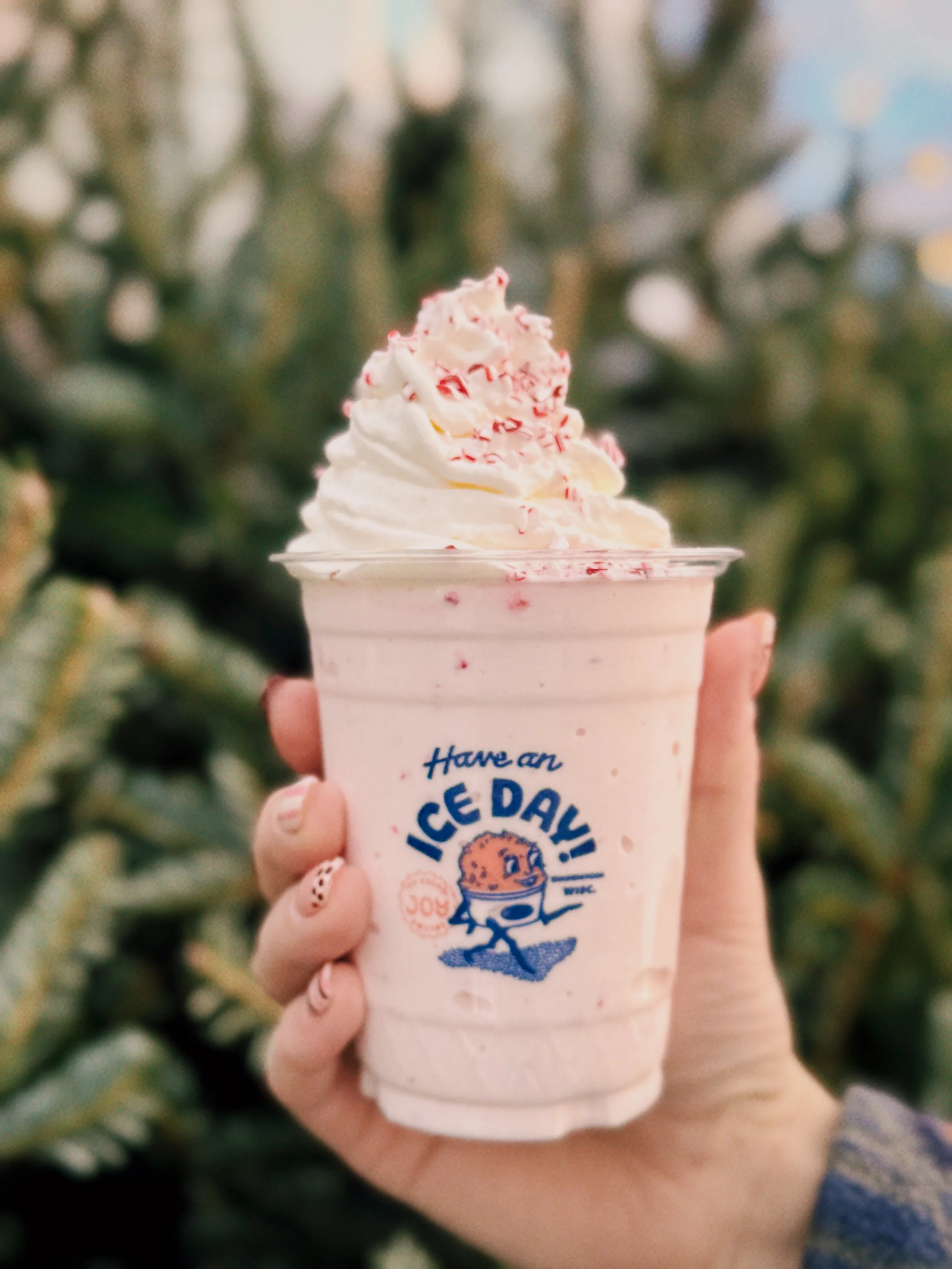Our Peppermint Marshmallow Shake is pure holiday cheer in a cup. We blend creamy vanilla ice cream with swirls of cool peppermint candy and fluffy marshmallow, then top it with a swirl of whipped cream and festive sprinkle of crushed peppermint,. It's sweet, minty, cozy, and basically what would happen if your favorite holiday sweater became a shake.
